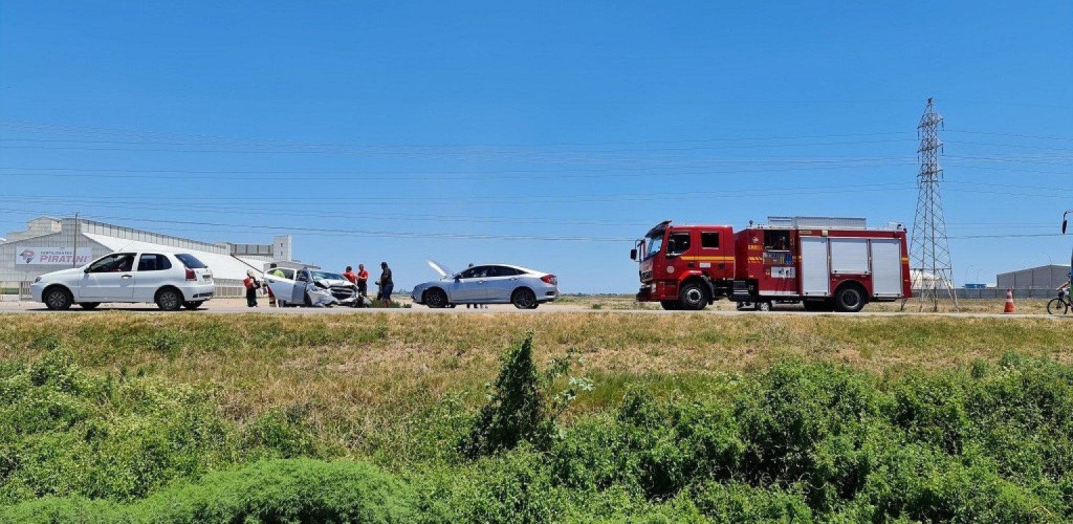 Um acidente, envolvendo dois carros e uma caminhonete de gás, deixou pelo menos uma pessoa ferida, na manhã desta sexta-feira, na BR 392. A colisão aconteceu na altura do km 5, em frente à unidade da Yara Brasil, no distrito industrial.