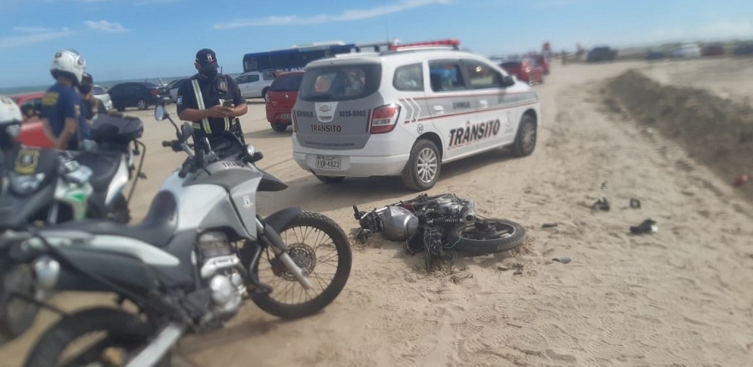 Duas situações relacionadas com motocicletas mobilizaram os agentes de trânsito neste domingo, no balneário Cassino. Na primeira delas, a equipe estava realizando patrulhamento na orla, quando se deparou com uma motocicleta sem placas, espelhos e cano de escapamento.