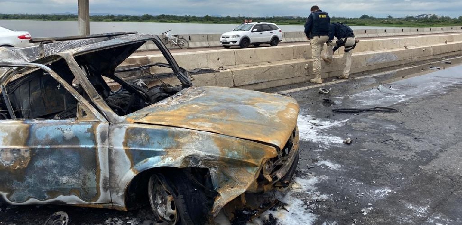 Em razão da batida o Gol pegou fogo e dois dos passageiros morreram. Foto: Divulgação/PRF