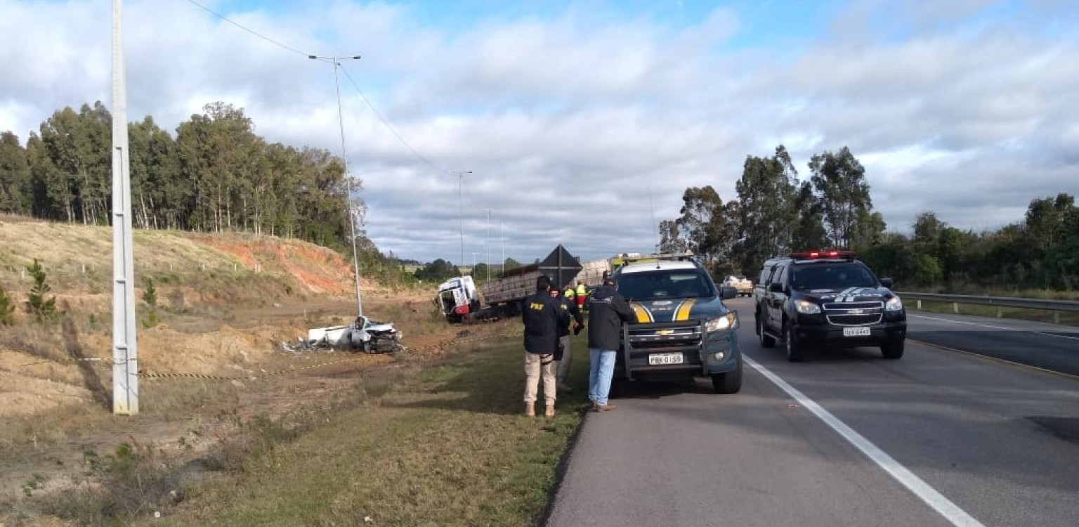 Uma colisão frontal entre um carro e um caminhão terminou com a morte de uma pessoa, na manhã desta terça-feira, na BR 116, em Turuçu. O acidente aconteceu na altura do km 476 e a vítima fatal foi o condutor do veículo, com placas de Pelotas.