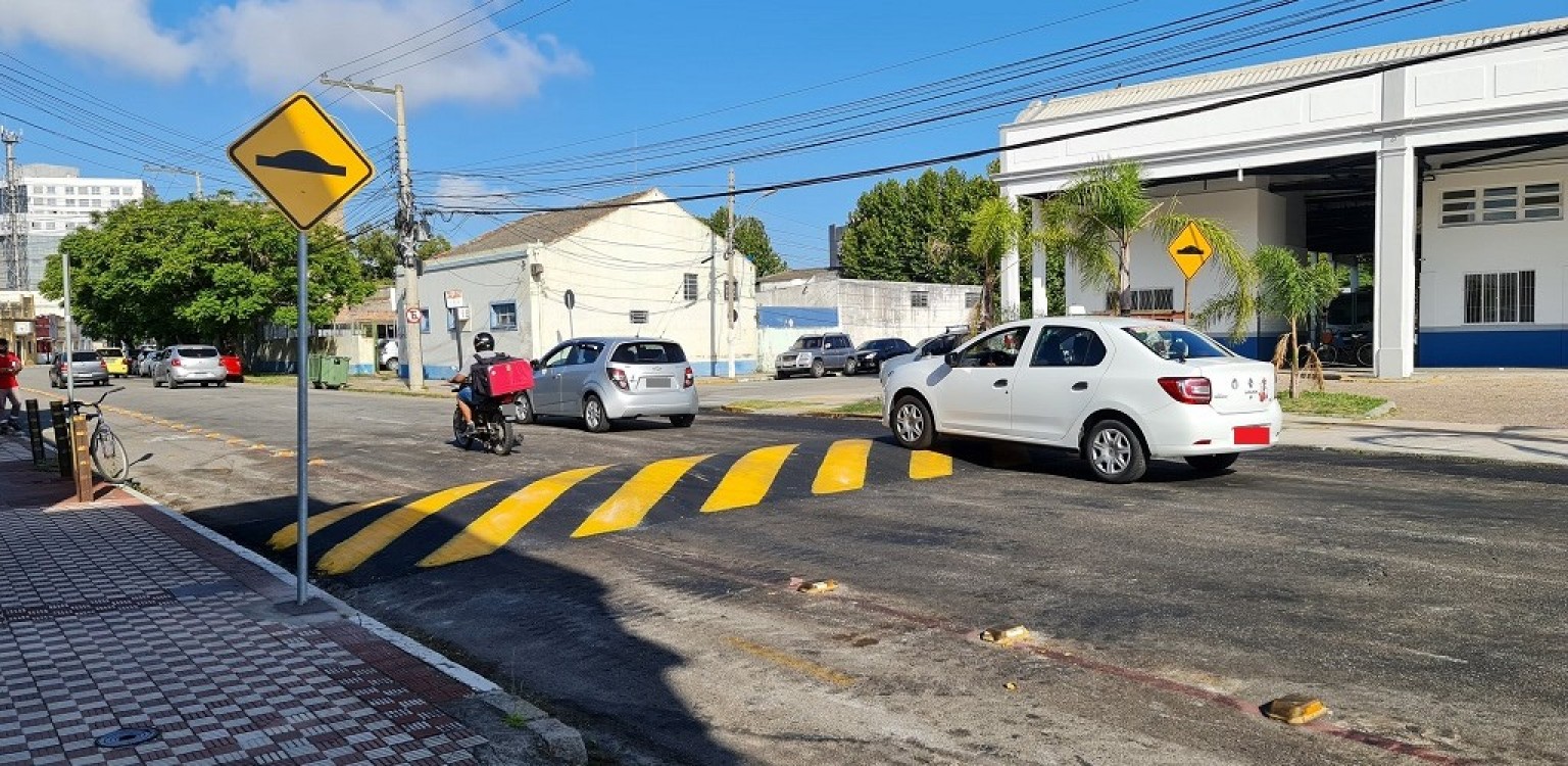 Antes mesmo de completar as primeiras 48 horas de instalação, a lombada na Rua Vice Almirante Abreu, em frente à antiga rodoviária, já está repercutindo nas redes sociais. A principal reclamação dos condutores é com relação a altura do redutor de velocidade que faz com que em muitos casos a parte debaixo dos veículos raspe no asfalto.