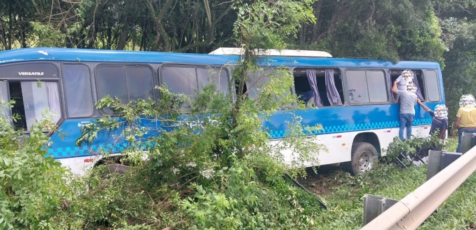 Quatro pessoas ficaram levemente feridas em uma saída de pista envolvendo um ônibus do transporte das linhas rurais de Pelotas. O acidente aconteceu no início da tarde desta sexta-feira (5), no km 78 da BR 392, nas proximidades da Embrapa.