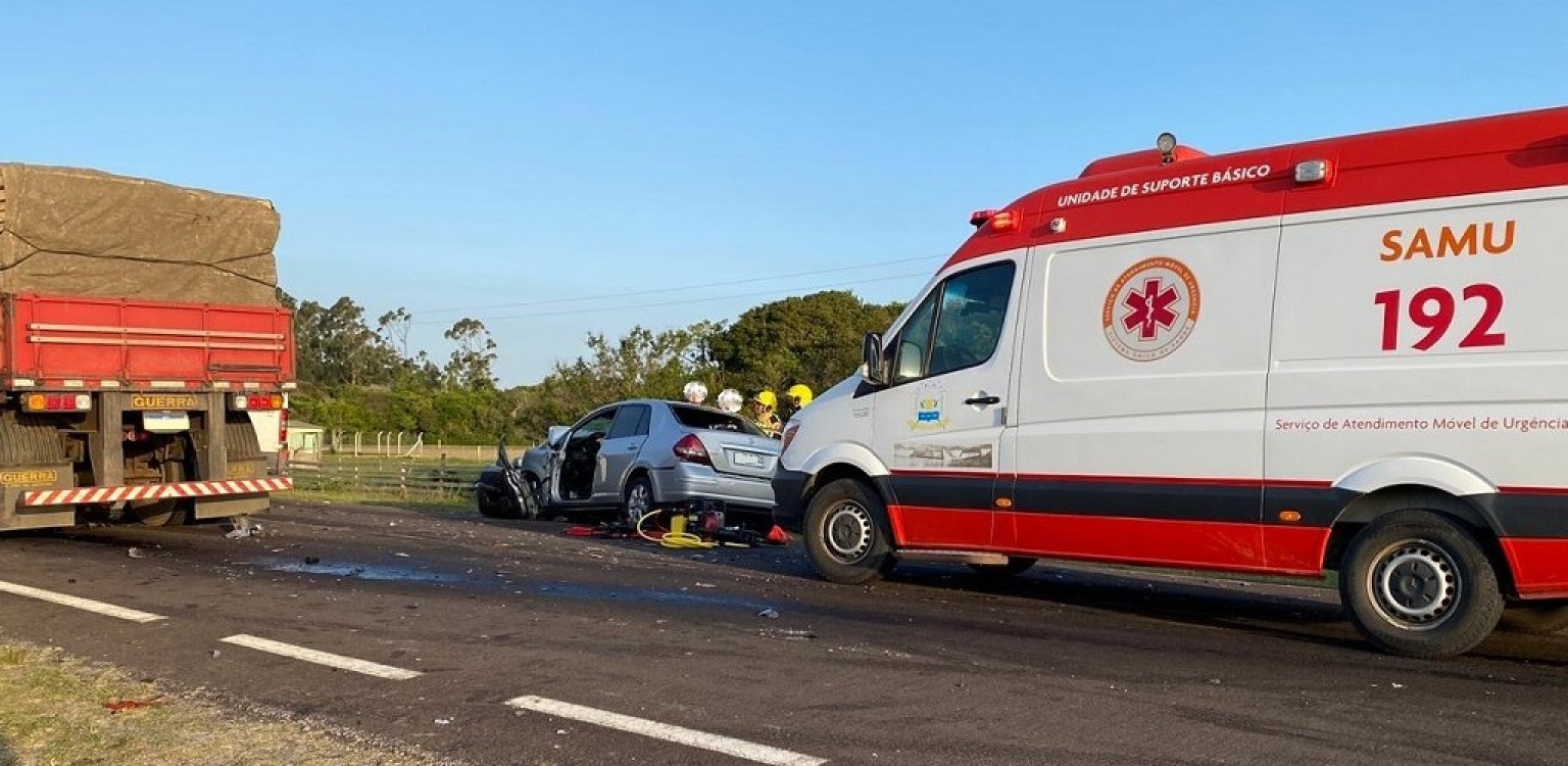 Pelo menos duas pessoas morreram em um acidente, na tarde desta quinta-feira (13), na BR 101, em São José do Norte. De acordo com informações da Rádio Clube SJN, o fato aconteceu na localidade do Divisa, por volta das 16h30 e envolveu uma carreta e um carro, com placas do Uruguai.