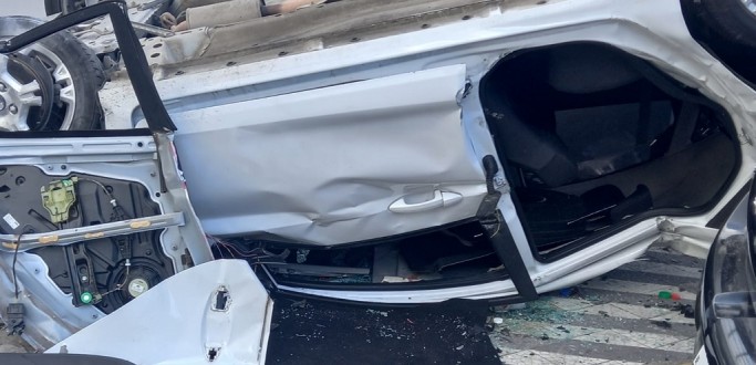 CARRO TOMBA EM ACIDENTE NO CRUZAMENTO DA NETO COM VITORINO, EM RG