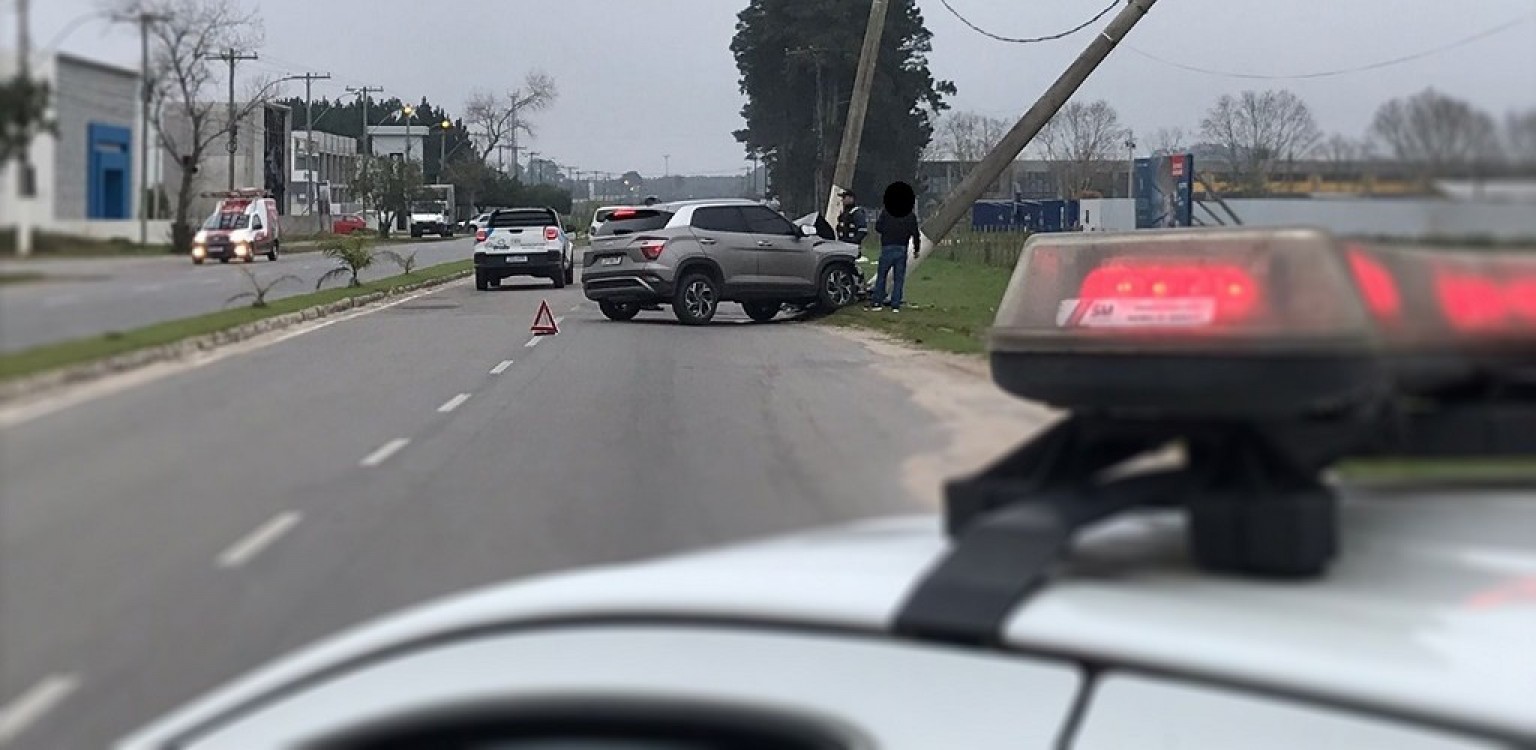 O começo da manhã desta segunda-feira (1º) foi marcado por uma colisão de um carro contra um poste de energia elétrica, na Avenida Adolfo Fetter, no Laranjal, em Pelotas. O acidente, envolvendo uma Hyundai Creta, aconteceu por volta das 08h30 e deixou pelo menos uma pessoa ferida que foi socorrida pelo Serviço de Atendimento Móvel de Urgência (SAMU).
