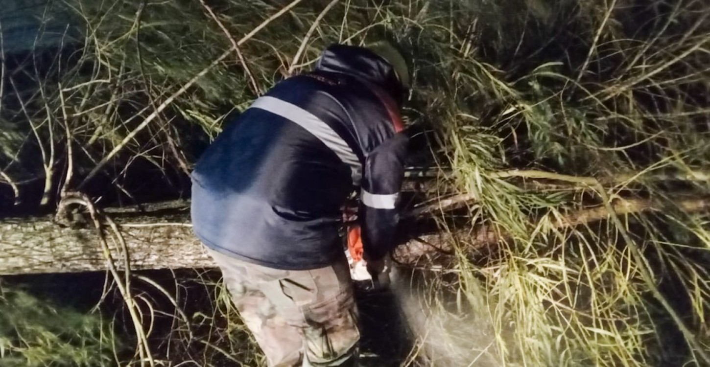 As situações mais críticas e que estão sendo atendidas foram de vegetais caídos em vias como Roberto Socoowiski, Primeiro de Maio, ERS 734 e Val Porto, na ligação com a BR 392. Fotos: Divulgação/Defesa Civil/2º BRBM/Redes sociais/Cícero Gomes