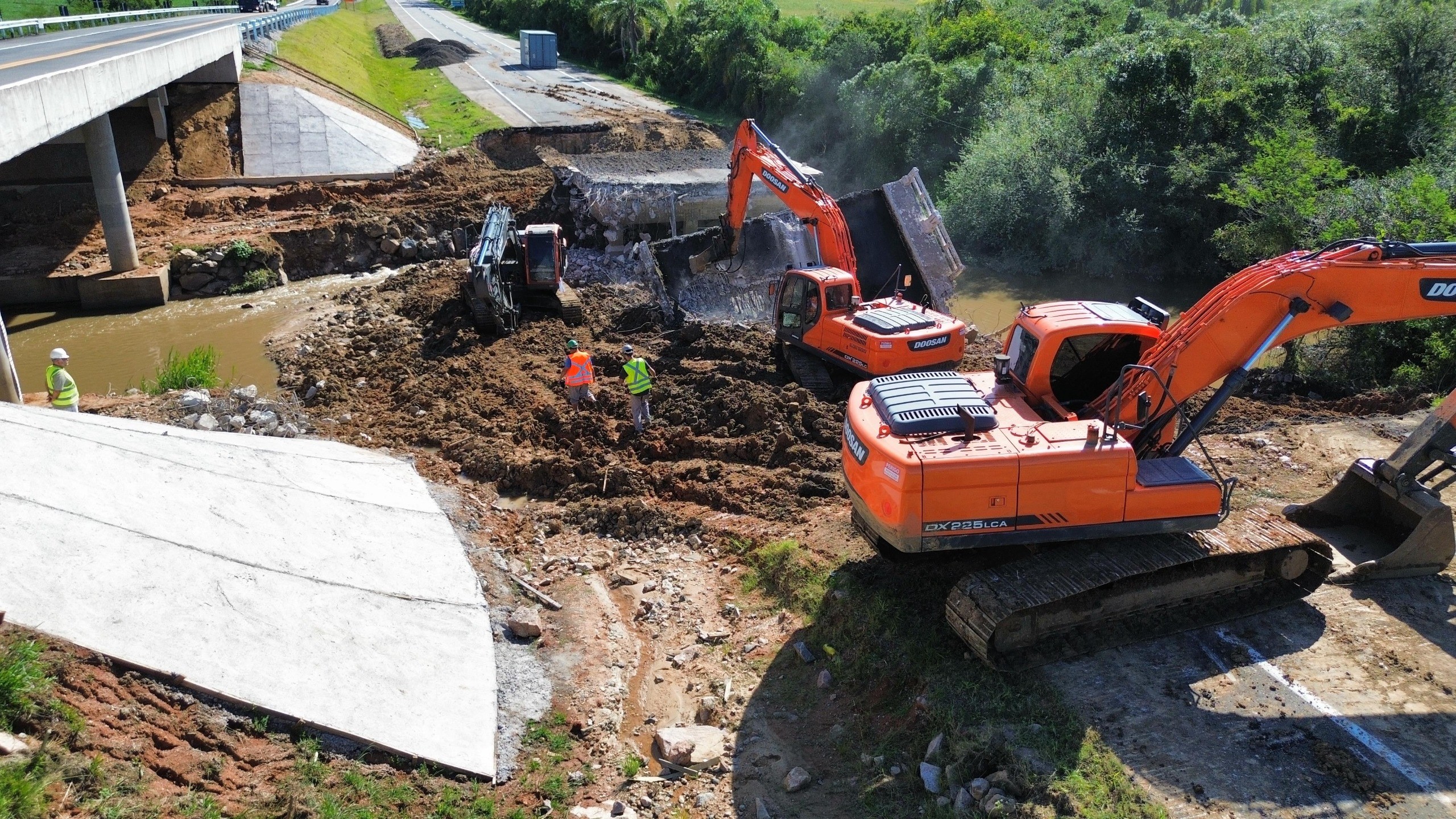 O trabalho de reconstrução das pontes será realizado em cinco etapas. A implantação de desvios para garantir a fluidez do trânsito e a demolição das estruturas antigas já foram realizadas. Agora, começará de fato a construção das pontes com maior capacidade hidráulica, aterro e pavimentação das áreas de acesso. Na sequência, será implantada a sinalização e, por fim, a liberação para o tráfego. A previsão é que as obras sejam concluídas até fevereiro de 2026.