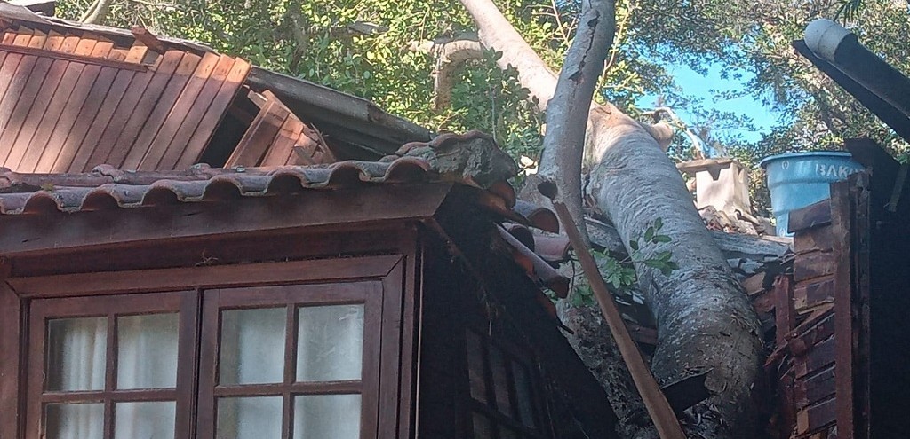 O Corpo de Bombeiros trabalhou no atendimento de duas ocorrências de fios energizados sobre residências e de quedas de galhos de árvores no Barro Duro. Foto: Divulgação/Defesa Civil