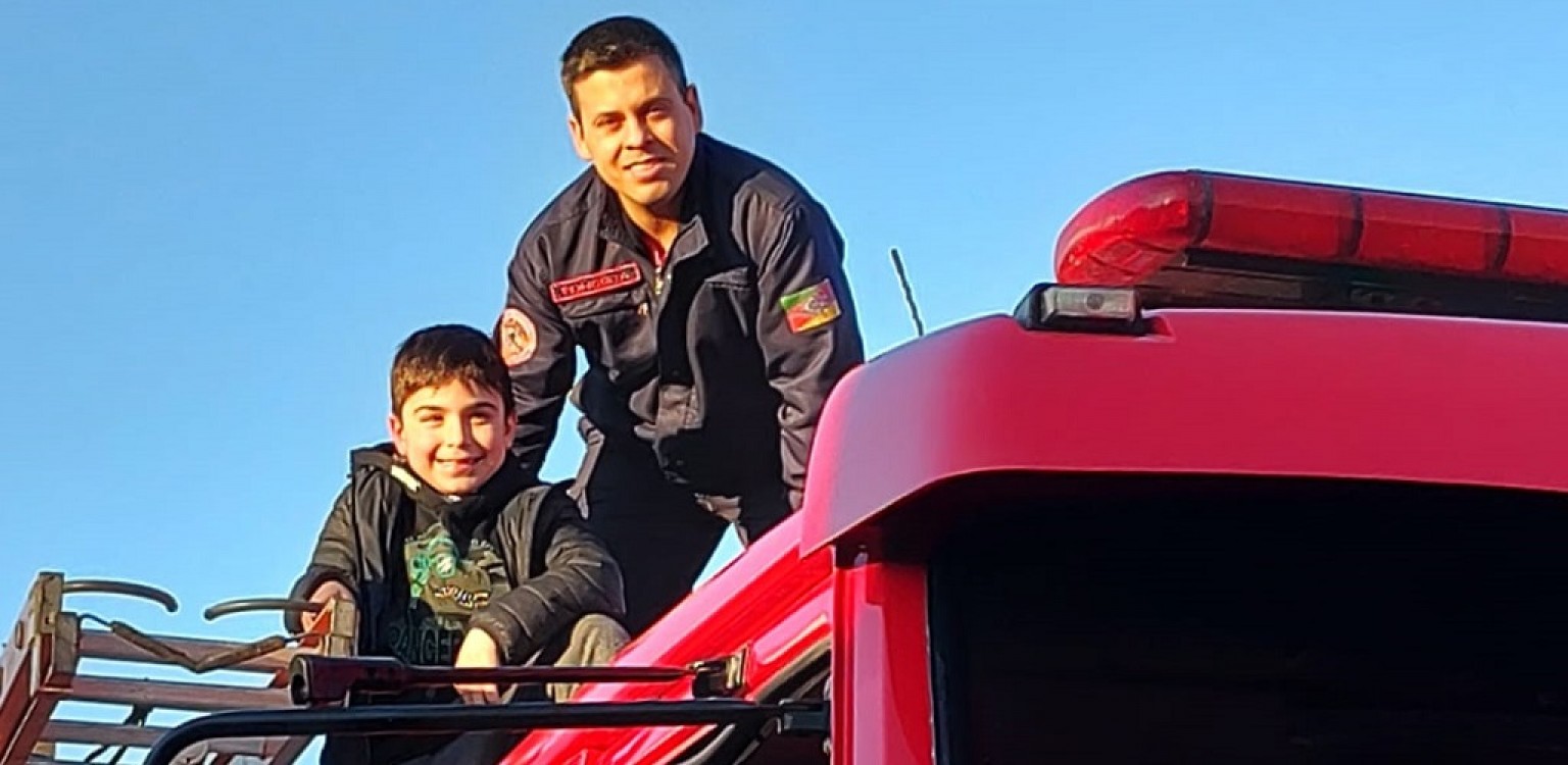 Mateus Bittencourt é um menino de apenas seis anos, mas que já sabe o que quer ser quando crescer: bombeiro militar. A futura profissão, já revelada aos familiares, foi confidenciada aos novos amigos conquistados na última segunda-feira (18), quando ele e a avó estiveram visitando o quartel do Corpo de Bombeiros de Jaguarão.