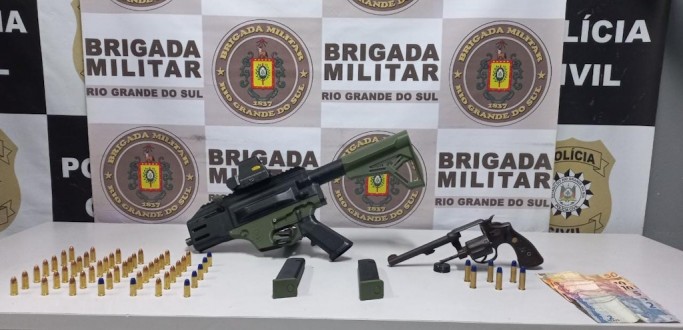 5º BPCHQ APREENDE SUBMETRALHADORA COM TRIO ABORDADO NO BAIRRO SANTA TEREZA, EM RG