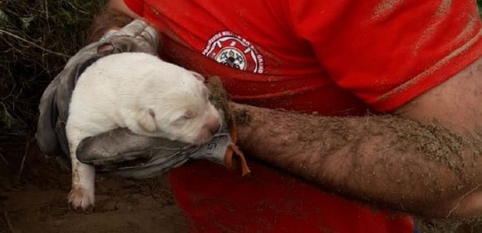 BOMBEIROS SALVAM CADELA E SEIS FILHOTES PRESOS EM UM BURACO NA VILA DA QUINTA