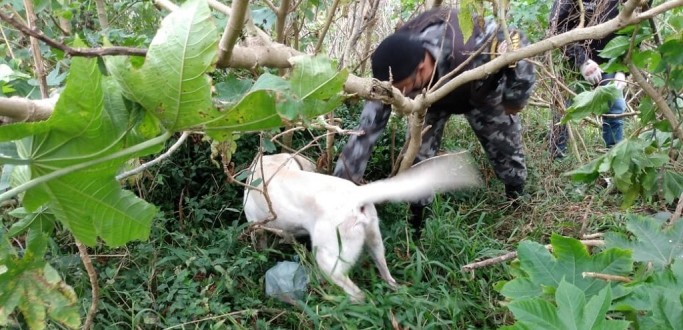 LABRADOR DO CANIL DO 4º BPM AUXILIA DRACO NA PROCURA POR DROGAS, NO DUNAS, EM PELOTAS