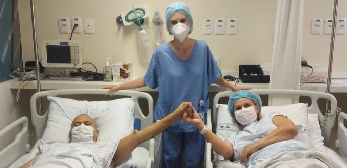MARIDO RECEBE RIM DA ESPOSA EM TRANSPLANTE NO HOSPITAL MOINHOS DE VENTO, EM PORTO ALEGRE
