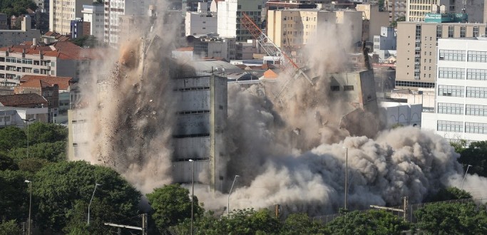 IMPLOSÃO DE SETE SEGUNDOS COLOCA ABAIXO ANTIGA SEDE DA SSP