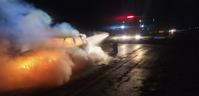 BOMBEIROS DE JAGUARÃO COMBATEM INCÊNDIO EM TÁXI URUGUAIO